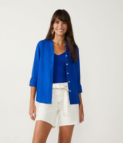 Camisa de Viscolino con escote en pico, manga larga y botonadura frontal.