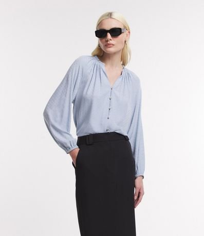 Camisa en Viscosa con Cuello Padre Fruncido y Superficie Texturizada 1