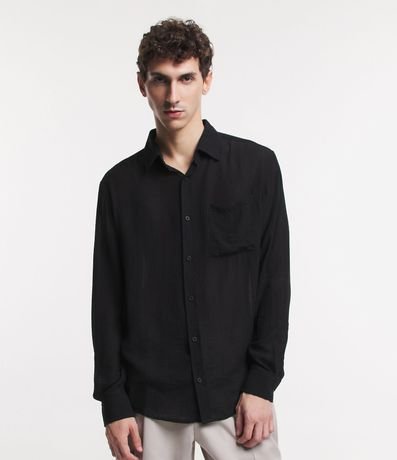 Camisa fluida masculina, confeccionada en viscosa, con cuello solapa, abotonado delantero, mangas largas y texturas.