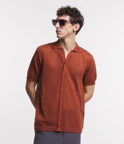 Camisa Manga Corta en Punto con Textura Hueca 1