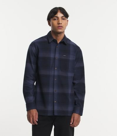 Camisa regular en algodón, con padronagem de cuadros, bolsillo y mangas largas.