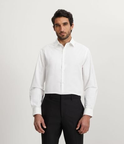 Camisa masculina, modelo regular, confeccionada en microfibra, con cuello inglés, mangas largas y abotonado frontal.