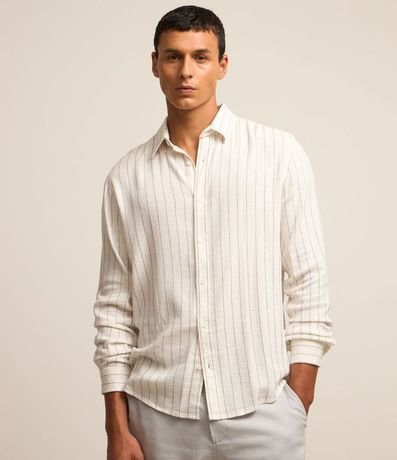 Camisa regular masculina, confeccionada en tricolina. El modelo es texturizado a rayas.