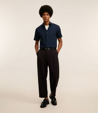 Camisa manga corta, abotonado delantero, confeccionada en viscosa con fibra de bambú y sin estampa.
