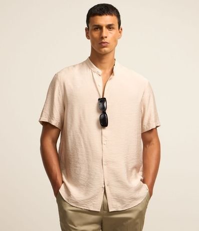 Camisa delgada hecha en viscolino, con cuello padre, mangas cortas y abotonado delantero.