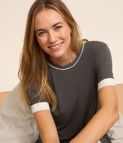 Camisón Manga Corta en Viscosa con Detalle Contrastante | Renner