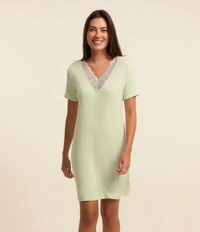 Camisón Manga corta en Viscosa con Detalle de Encaje 1