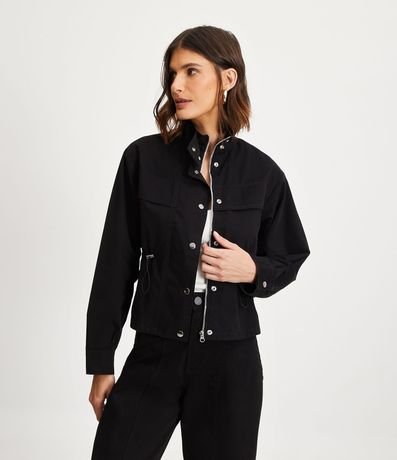 Campera Acinturada en Sarga con Cuello Alto | Renner