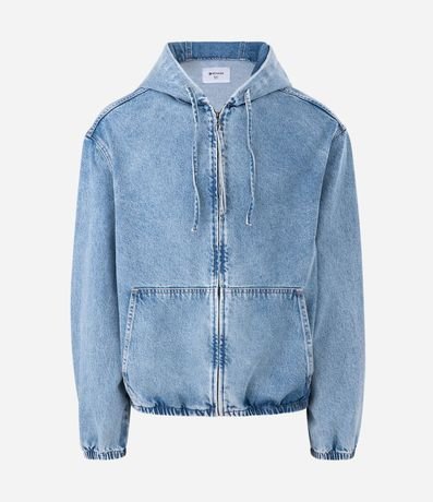 Campera bomber, con capucha, con bolsillos y cremallera delantera.
