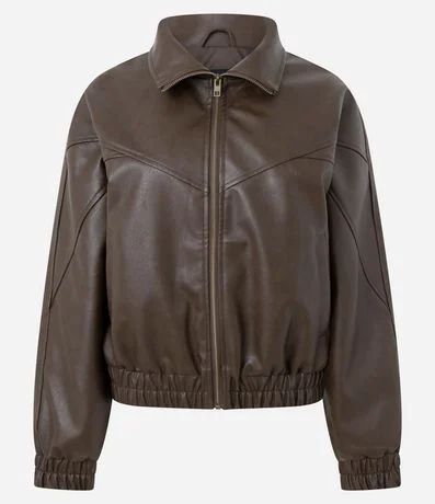 Campera bomber en PU con caída estructurada y acabado de efecto manchado. Posee cuello, bolsillos delanteros y recortes que valorizan el diseño. Ideal para componer producciones urbanas con estilo, ofreciendo practicidad y comodidad para el dia a dia.