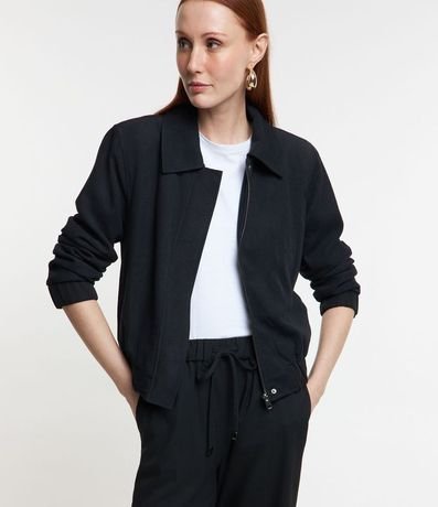 Campera Bomber en Suedine con Cuello Camisero 1