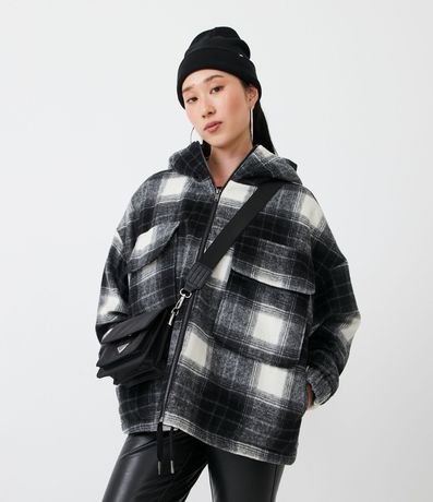 Campera en Polivelour con Capucha y Estampado de Cuadros Degradado | Renner