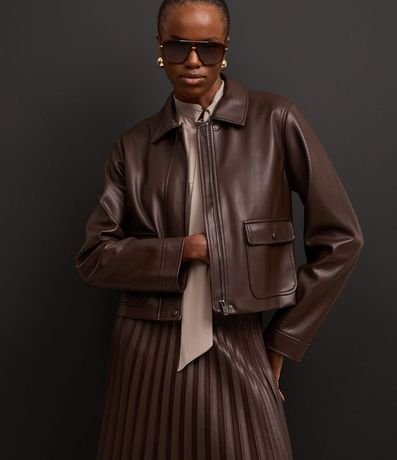 Campera en PU con Vista Oculta y Bolsillos Cargo 1