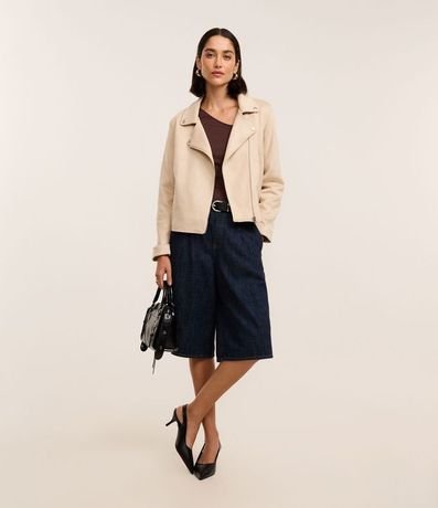 Campera Perfecto en Gamuza con Cuello Bowling y Bolsillos | Renner
