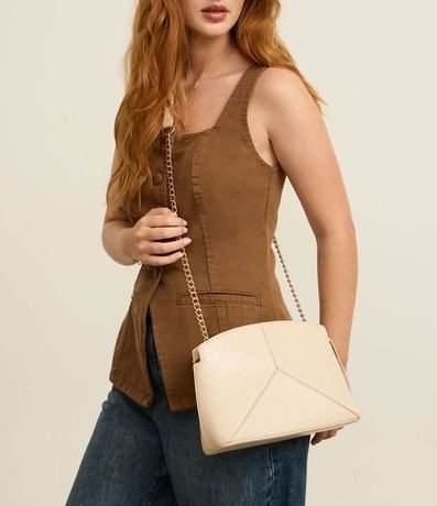 Cartera femenina transversal pequeña confeccionada en PU con textura lisa, trayendo elegancia y practicidad. Posee asa de cadena con acabado light gold, cierre por cremallera y espacio interno funcional.