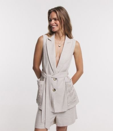 Chaleco Alargado en Viscolino con Cinturón y Bolsillos Diferenciados 1