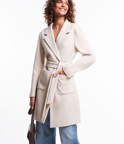 Chaqueta Alargado en Polyvelour con Lazo y Bolsillos | Renner