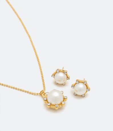 Conjunto Caravana y Collar en Metal con Perla y Strass 1