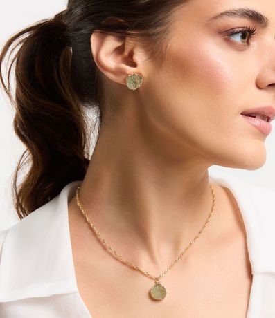 Conjunto Collar y Caravana Botón en Resina con Efecto Piedra Drusa | Renner