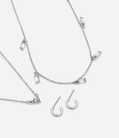 Conjunto de Collar Capas y Caravana Mini Aro con Colgante de Corazón y Baguette 1