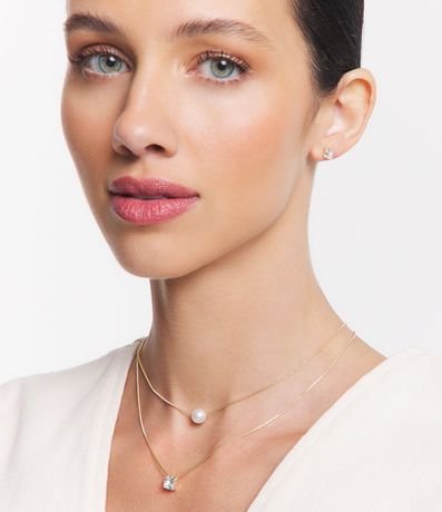 Conjunto Delicado Caravana y Collar con Colgante Ponto de Luz y Perla 1