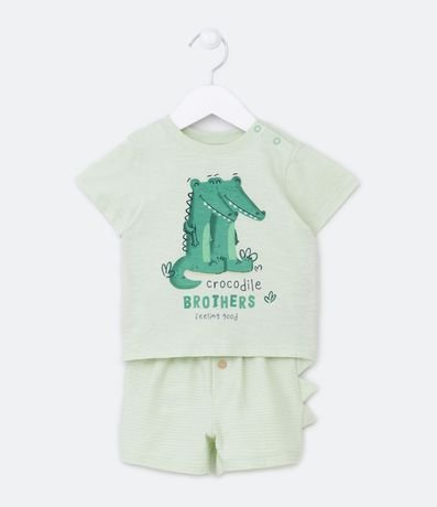 Conjunto Infantil en Flame con Estampado Cocodrilos Brothers y Bermuda Texturizada - Talle 3 a 18 meses 1