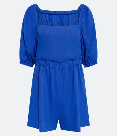 Enterito corto de mujer, hecho en lino, con mangas cortas tipo globo y cintura con volado.