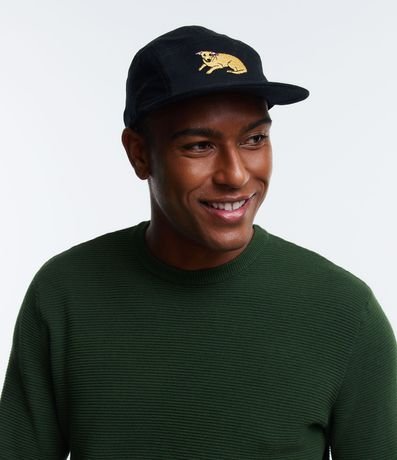 Gorra Ala Recta en Sarga con Bordado de Perro Caramelo 1