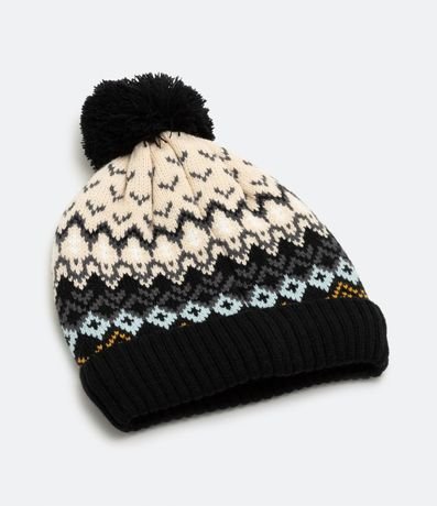 Gorro Infantil en Punto con Estampado Étnica y Pompón - Talle U 1