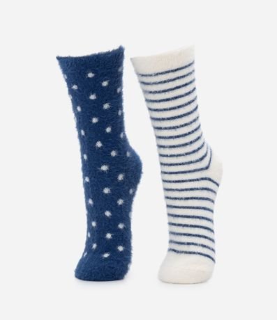 Kit 02 Medias Caña Larga con Pelos y Estampado en Lunares y Rayas | Renner