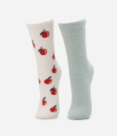 Kit 02 Medias Caña Larga de Peluche y Estampa de Fruta | Renner