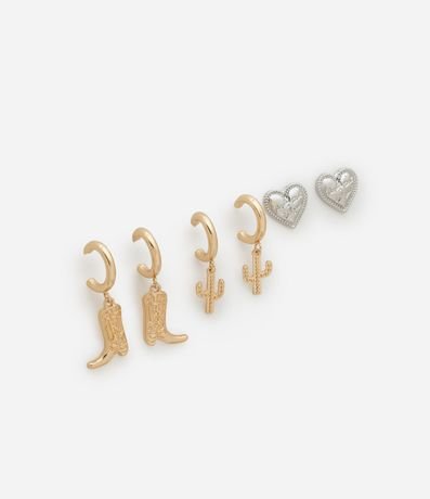 Kit 03 Caravanas Argollas con Colgante de Bota y Cactus y Caravana Corazón 1