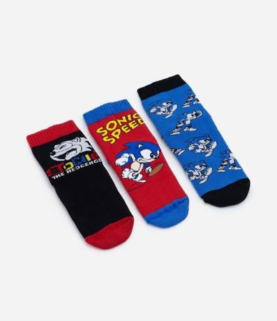 Kit 03 Medias Infantiles Atoladas con Estampado del Sonic - Talle 27 al 38 1