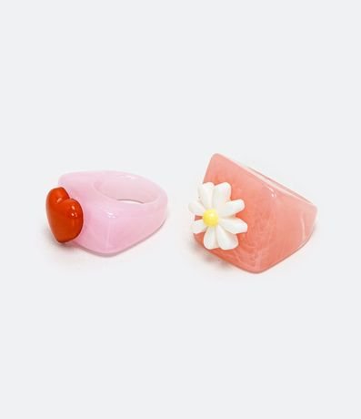 Kit 2 Anillos en Resina con Estampado de Corazón y Flor | Renner