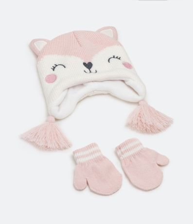 Kit con gorro y guantes, infantil, arreglado en polar.