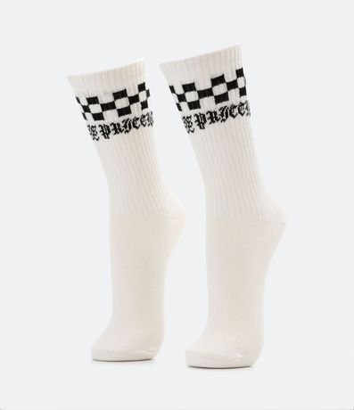 Media Caña Larga en Algodón con Estampado en Cuadros y Lettering Priceless 1