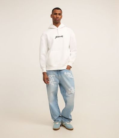 Pantalón Baggy en Jeans con Puídos y Estampa Lettering Grafite 1