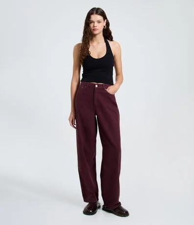 Pantalón femenino confeccionada en algodón certificado BCI. Posee modelo baggy, cintura tradicional con trabillas, cierre por botón metálico y cremallera, ademas de bolsillos curvos clássicos. El ruedo es recto, acompañando la amplitud del modelo baggy. El comprimento es padrón, proporcionando una caída moderna y versátil, ideal para combinaciones casuales y urbanas.