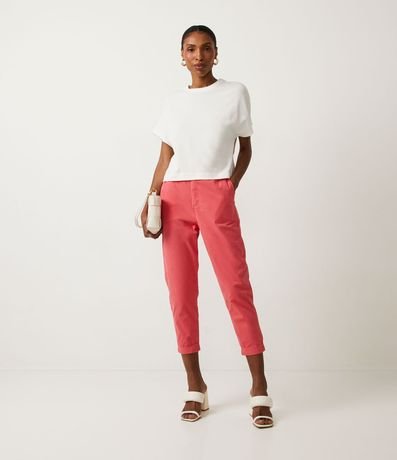 Pantalón baggy de sarga, con cintura média fruncida en los laterales.