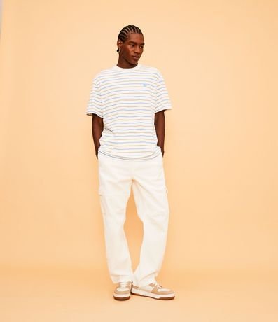 Pantalón cargo, en sarga, con cintura elástica. Fresco y moderno, su cintura elástica te permite renunciar a los cinturones y mantener tu estilo aún más cómodo.