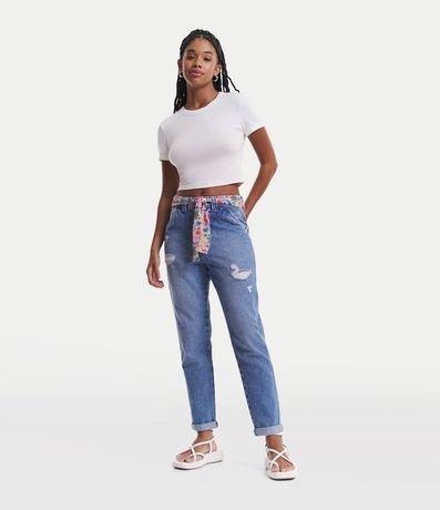 Pantalón Mom Jeans con Deshilachados y Bolsillo Recto 1