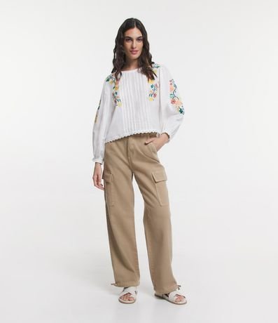 Pantalón Parachute en Sarga con Tiradores y Pespuntos Contrastantes 1