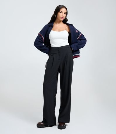 Pantalón femenino confeccionada con material más sostenible, en modelo recto. Prenda sastre, posee cintura con trabilla, cierre tradicional, bolsillo y raya de tiza.