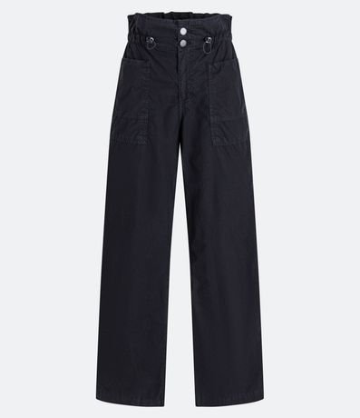 Pantalón de sarga, modelo wide leg, con bolsillos, cintura fruncida y tirador.