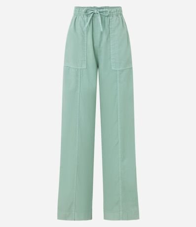 Pantalón Wide Leg en Sarga con Lazo y Recortes 1