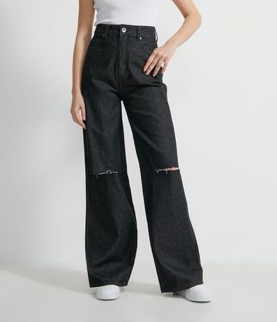 Pantalón Wide Leg Jean con Corte en la Rodilla | Renner