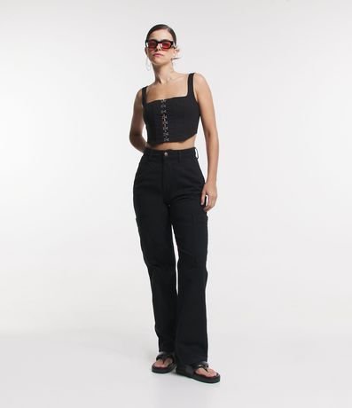 Pantalón wide legde sarga y con bolsillo cargo sin solapa. Prenda confeccionada en material más sostenible.