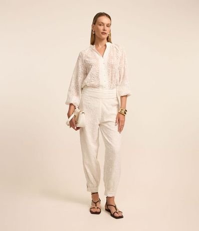 Pantalón Zanahoria Cintura Alta en Chiffon con Flores Bordadas | Renner