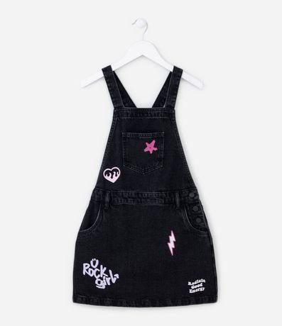 Peto Vestido Infantil en Jeans con Estampa de Garabatos - Talle 5 a 14 años | Renner