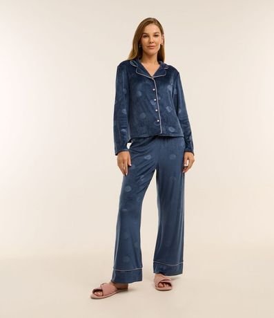 Pijama Americano Largo en Plush Texturizado de Lunares 1